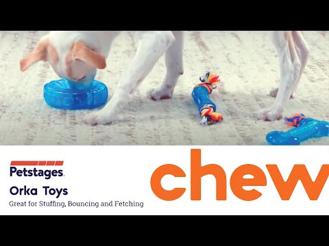 - DURABLE TPE ORKA MATERIAL: Durable, food-safe TPE material is used to construct this brightly colored chew toy so you can feel safe about the products your pup uses.